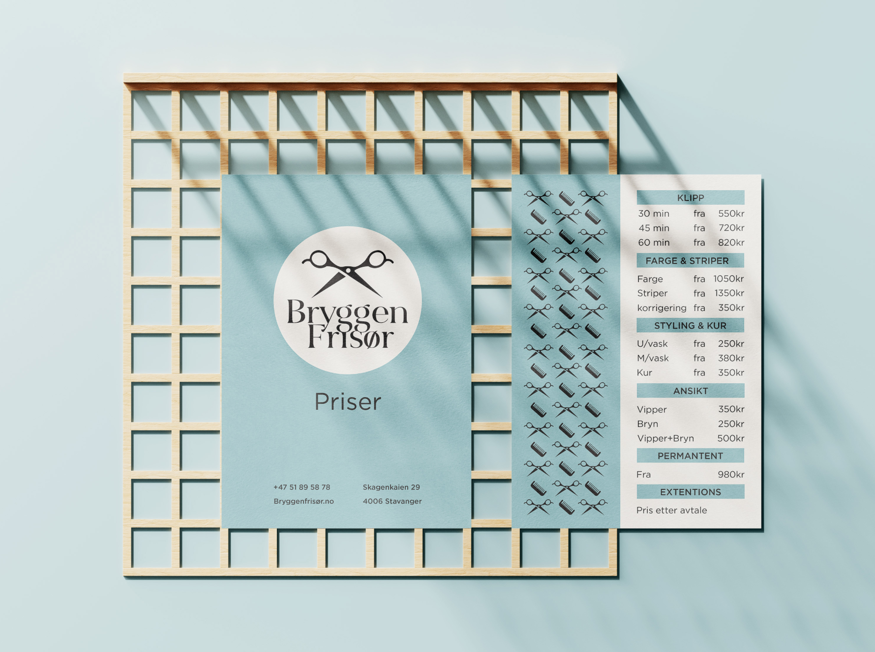 Prislisten er utviklet med fokus på god struktur og oversiktlig typografi. Den grafiske strukturen og mønsteret gir et lekent, men profesjonelt preg.